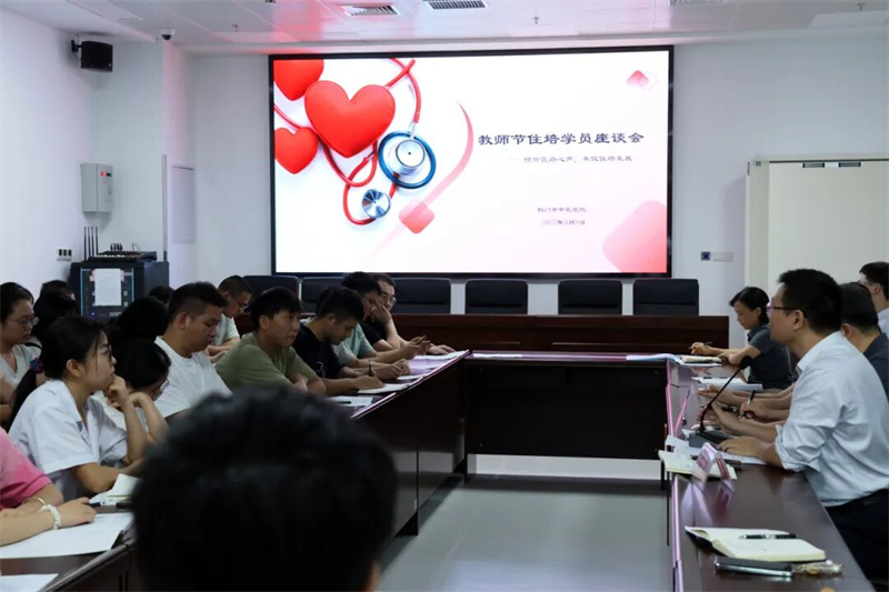 9月9日下午,荊門市中醫(yī)醫(yī)院在康保樓會(huì)議室召開以“傾聽醫(yī)路心聲,共促住培發(fā)展”為主題的教師節(jié)住培工作懇談會(huì)。會(huì)議由副院長楊文濤主持,院長涂敏率科研教學(xué)科、醫(yī)務(wù)科、人事科、財(cái)務(wù)科、總務(wù)科、績效管理辦公室等職能部門負(fù)責(zé)人,與教師代表、住培學(xué)員齊聚一堂,圍繞醫(yī)學(xué)教育及住院醫(yī)師規(guī)范化培訓(xùn)(住培)工作進(jìn)行深入交流。